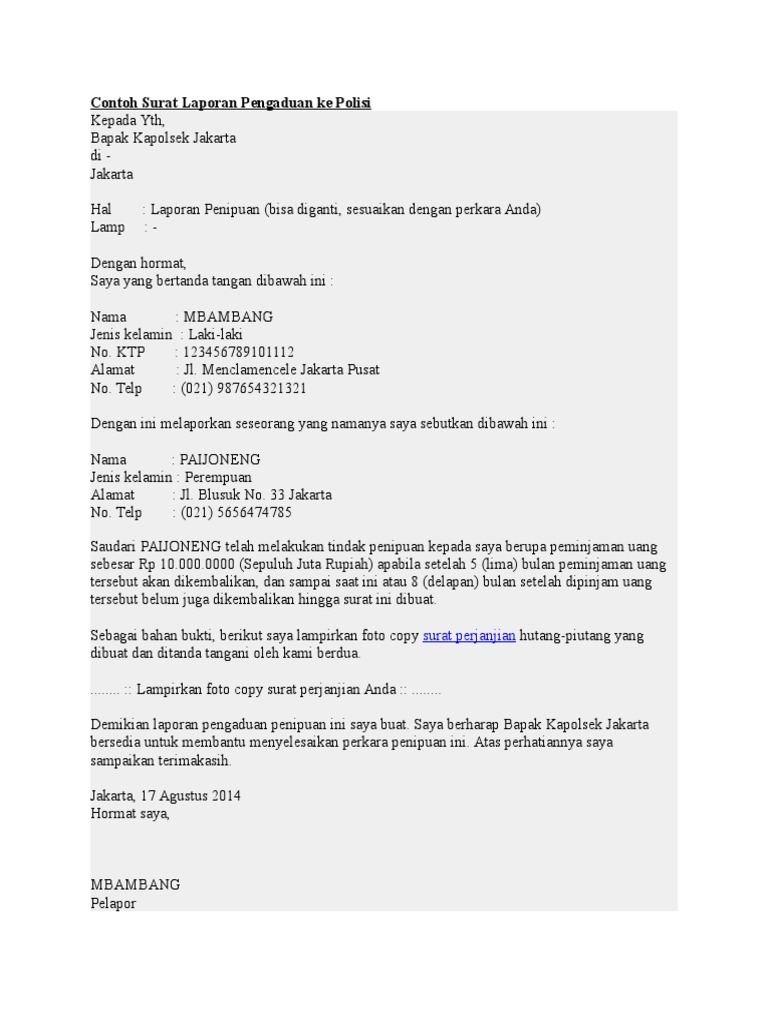 Contoh Membuat Surat Laporan Pengaduan Ke Polisi Bacanulis